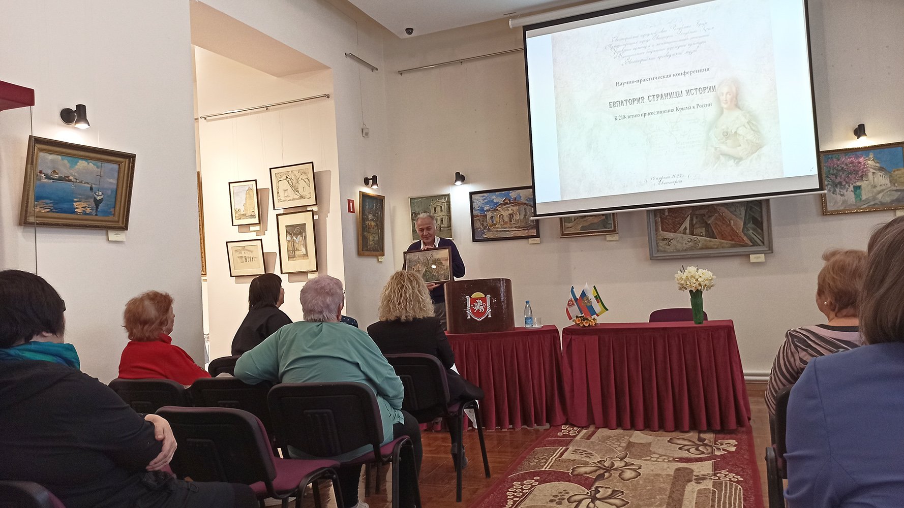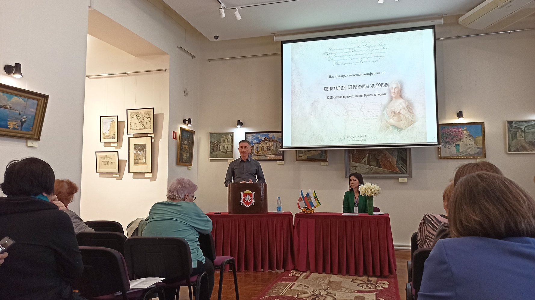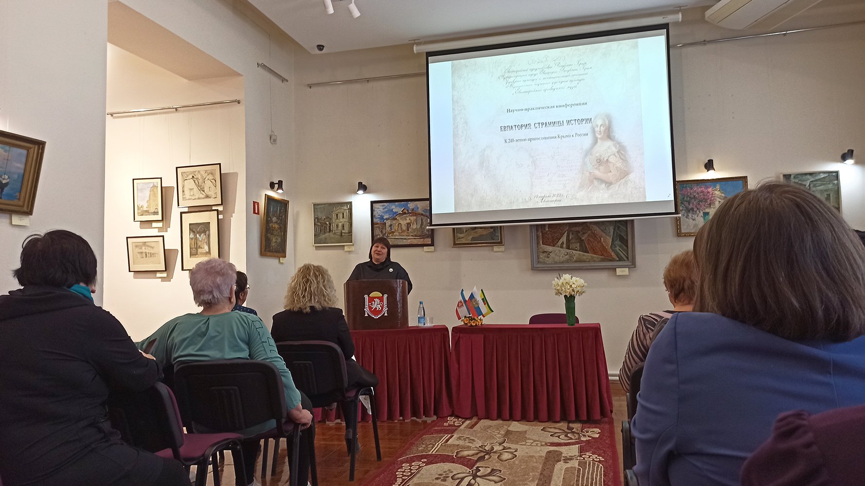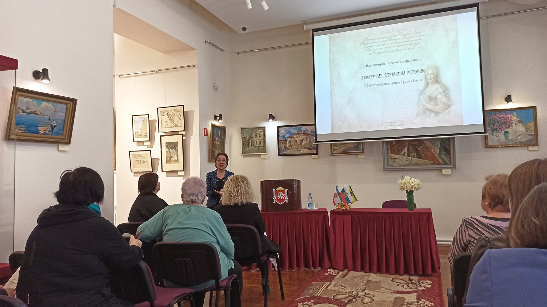 14 апреля в Евпаторийском краеведческом музее состоялась научно-практическая конференция «Евпатория: страницы истории», посвященная 240-летию присоединения Крыма к России и 170-летию начала Крымской (Восточной) войны. Открыла конференцию директор Евпаторийского краеведческого музея Приднева Татьяна Евгеньевна.
