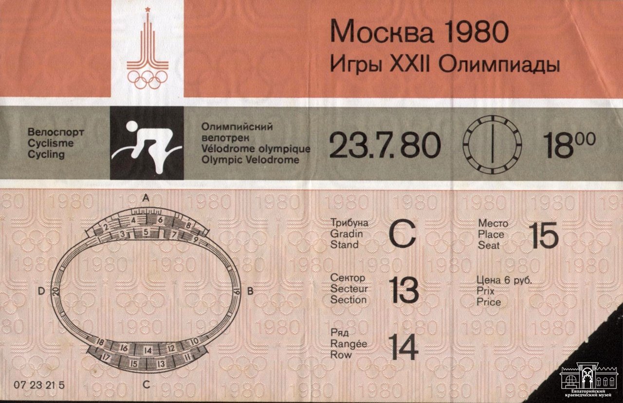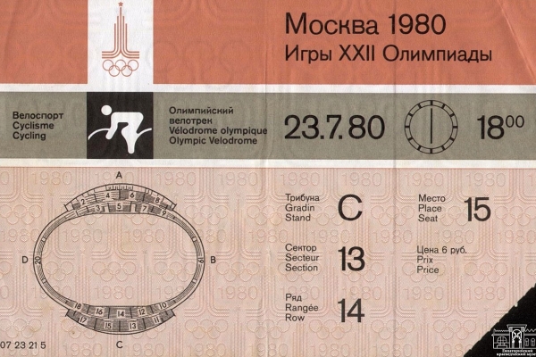 7. Билет входной на Олимпийский велотрек Игр XXII Олимпиады в г.Москва, в 1980 г. СССР. 1980 г.