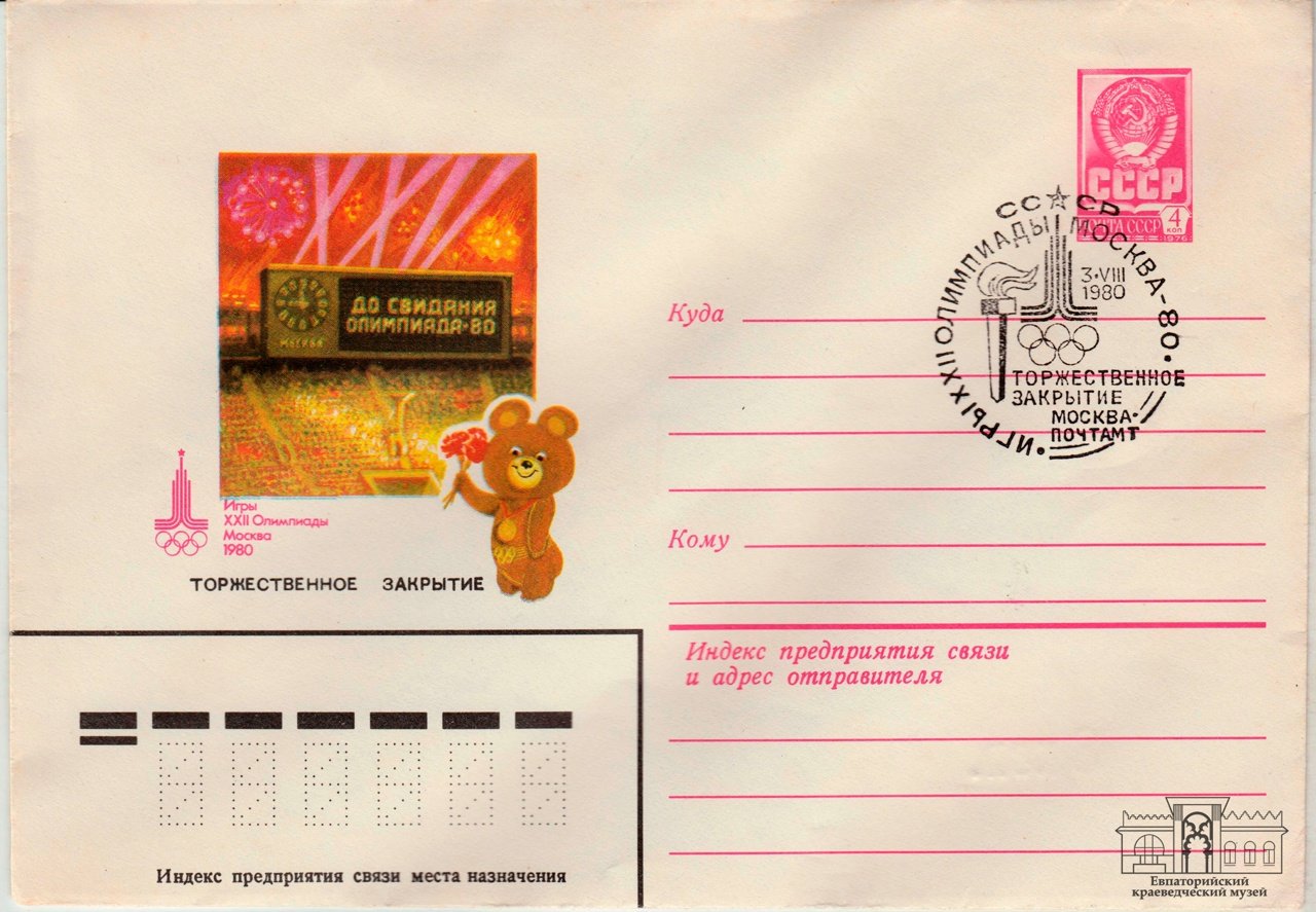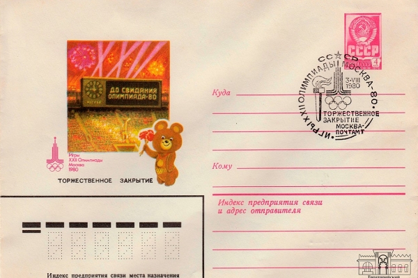 9. Конверт почтовый. «Игры XXII Олимпиады. Москва 1980. Торжественное закрытие». Министерство связи СССР. Пермская фабрика Гознака. 1980 г.
