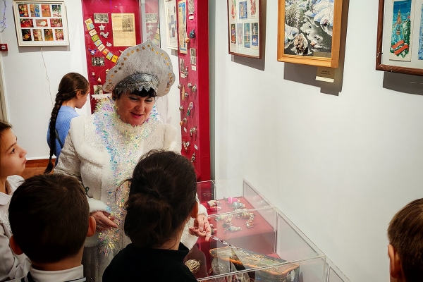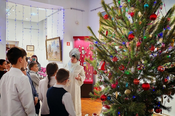 Юные гости музея узнали об истории новогодней елки и елочных украшений, познакомились с яркими экспонатами выставки – елочными игрушками и новогодними открытками советского периода, ставшими неизменными атрибутами главного зимнего праздника страны.