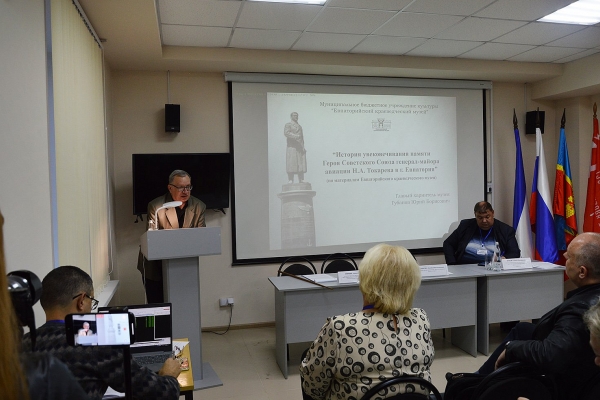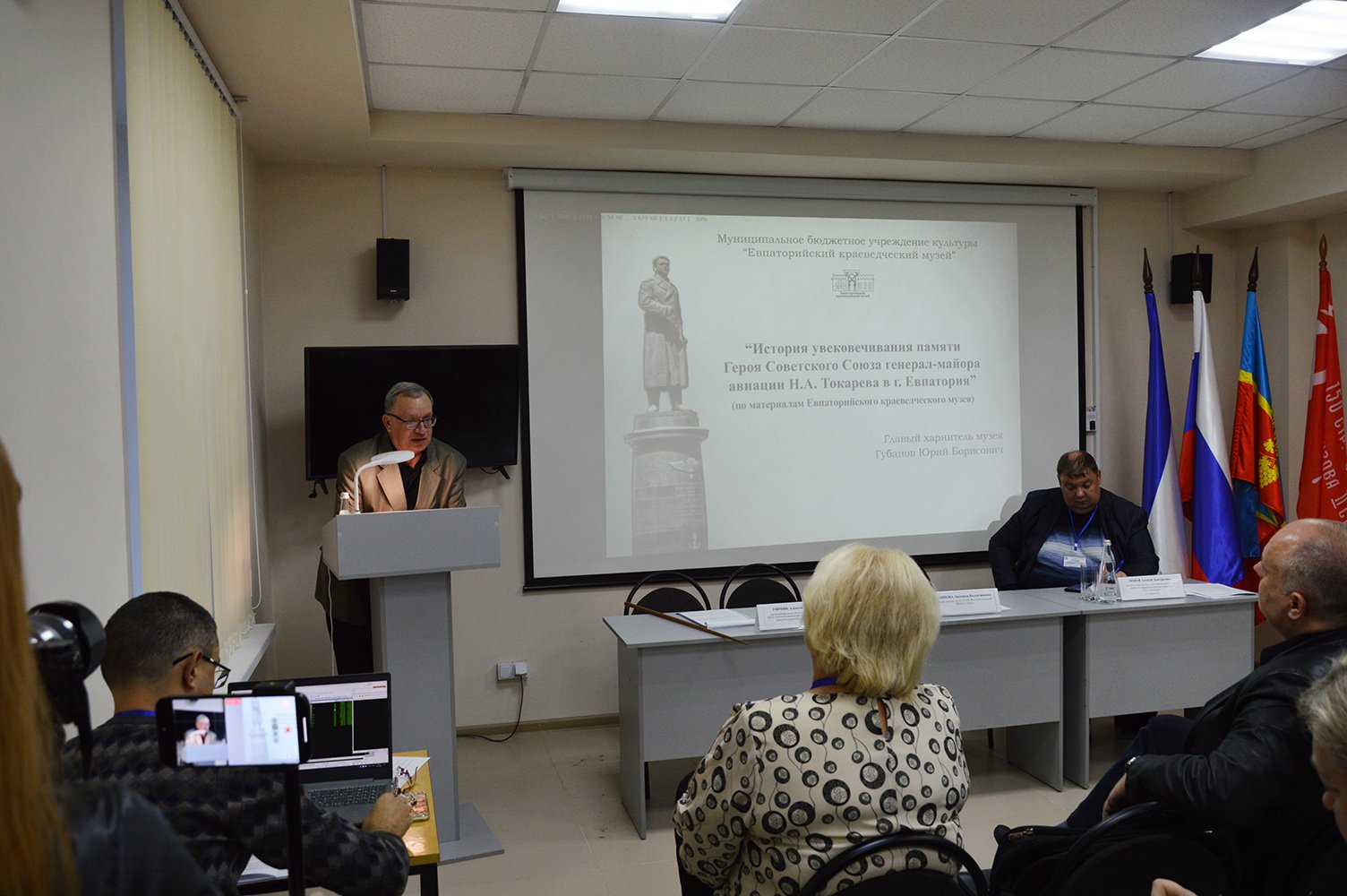 В работе конференции принял участие главный хранитель Евпаторийского краеведческого музея Ю.Б. Губанов. Он выступил с докладом «История увековечивания памяти Героя Советского Союза Н. А. Токарева в Евпатории (по материалам музея)».