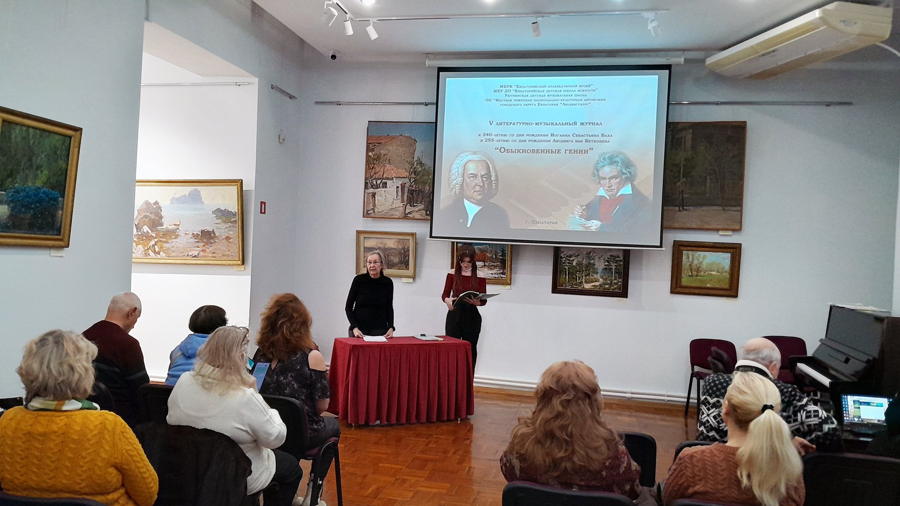 14 декабря в Евпаторийском краеведческом музее состоялся V литературно-музыкальный журнал «Обыкновенные гении», посвященный немецким композиторам: 340-летию со дня рождения Иоганна Себастьяна Баха и 255-летию со дня рождения Людвига ван Бетховена.