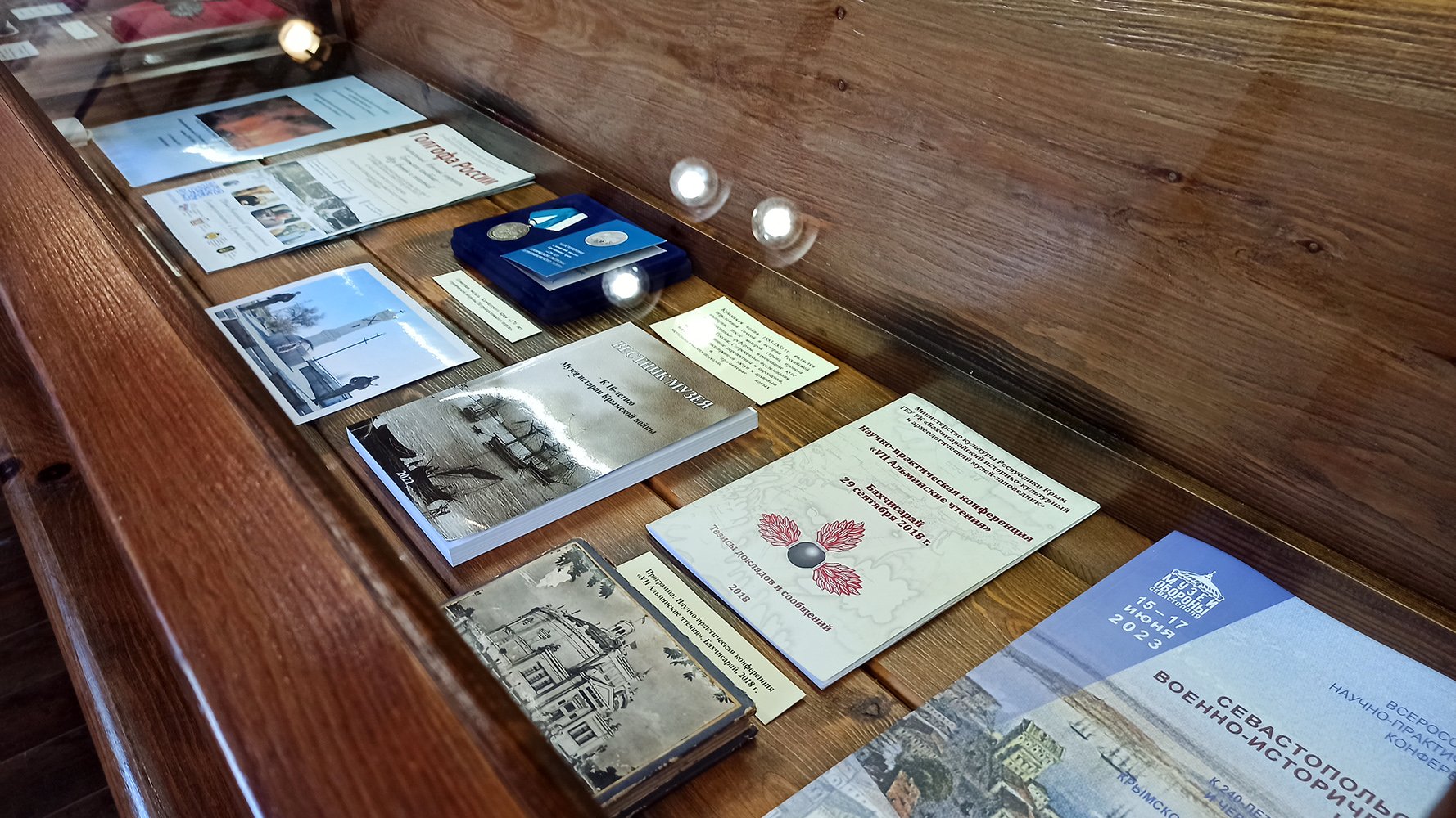 На выставке представлены сборники материалов научно-практических конференций, фотографии митингов, в которых принимали участие сотрудники Евпаторийского краеведческого музея, а также памятная медаль «170 лет героической обороны Петропавловского порта», переданная в дар музею губернатором Камчатского края.